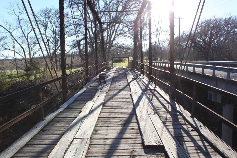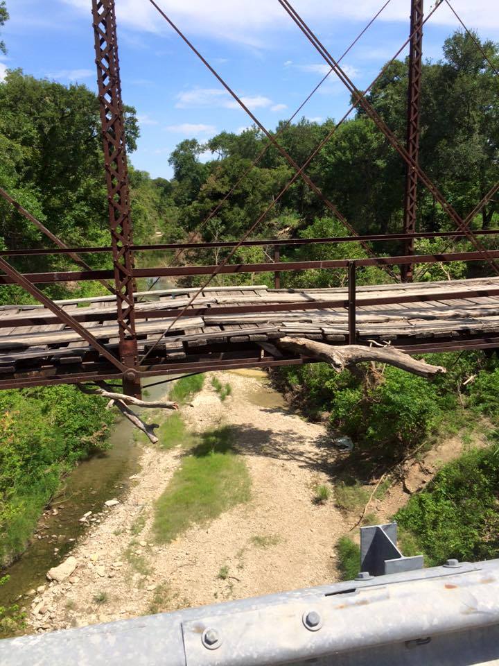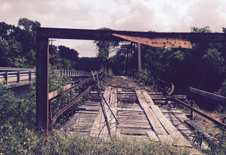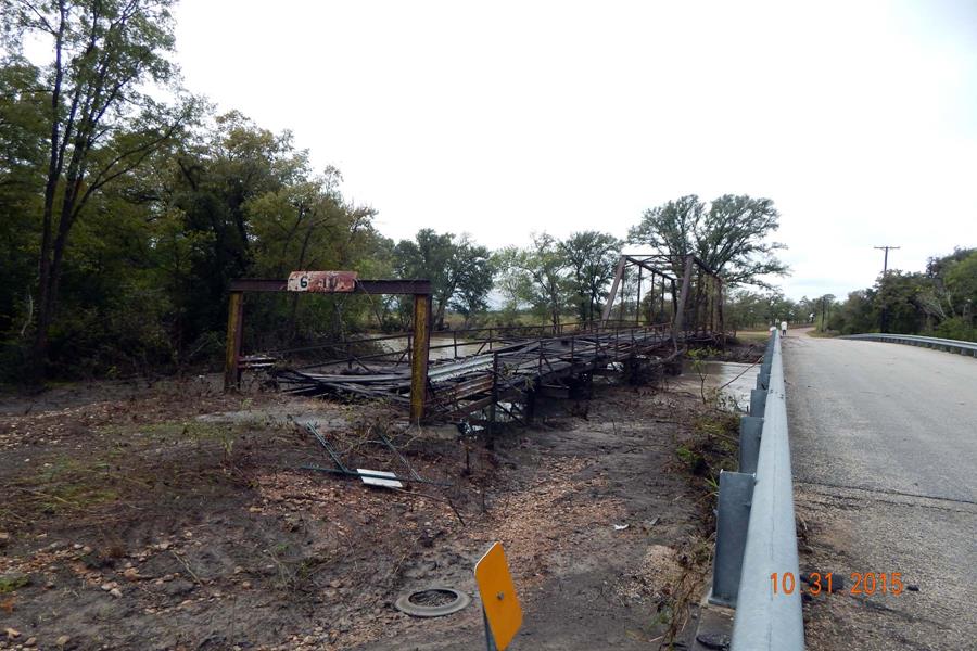 After the damage to the bridge from the May flood, several area property owners began researching the bridge history in preparation for trying to get repair work done on the bridge decking. On September 30, 2015 area property owners met with Judge Paul Pape to discuss funding possibilities for repairs and potential development of the area, and another meeting was scheduled for October 28, 2015. On October 20 2015, Precinct 4 County Commissioner, Bubba Snowden, had the debris from the May flood cleaned up at the bridge site (Fig. 7 and Fig. 8), and area residents were looking forward to being able to discuss more definite future plans at the October meeting. Unfortunately, by the time of this meeting, Bastrop County was experiencing a wildfire; consequently, the meeting was canceled.