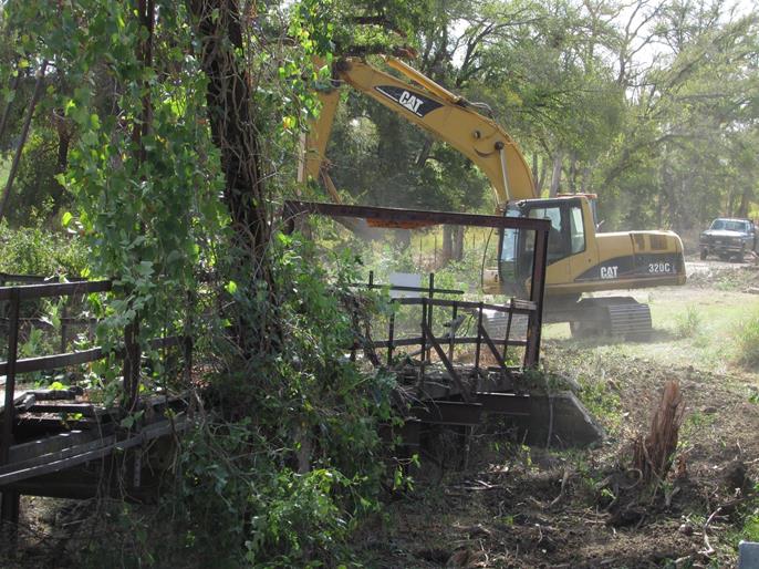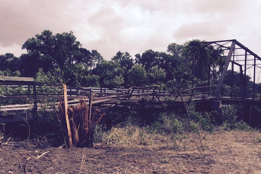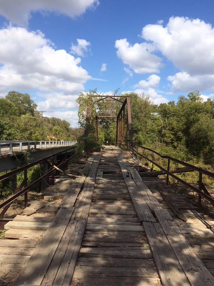After the damage to the bridge from the May flood, several area property owners began researching the bridge history in preparation for trying to get repair work done on the bridge decking. On September 30, 2015 area property owners met with Judge Paul Pape to discuss funding possibilities for repairs and potential development of the area, and another meeting was scheduled for October 28, 2015. On October 20 2015, Precinct 4 County Commissioner, Bubba Snowden, had the debris from the May flood cleaned up at the bridge site (Fig. 7 and Fig. 8), and area residents were looking forward to being able to discuss more definite future plans at the October meeting. Unfortunately, by the time of this meeting, Bastrop County was experiencing a wildfire; consequently, the meeting was canceled.