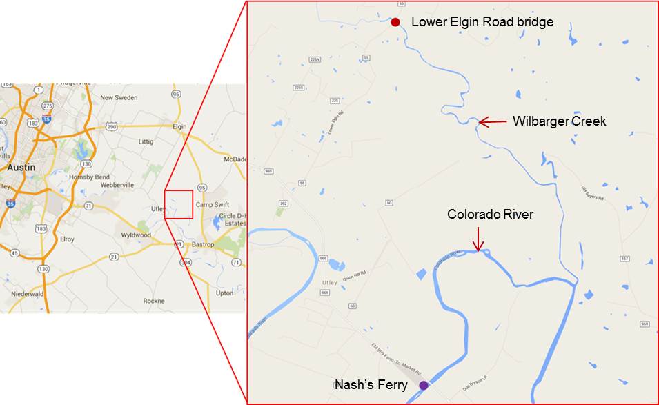 During the May 2015 flood, Wilbarger Creek crested at Elgin at 37.83 ft, which is considered to be an ‘historic crest’ (National Weather Service 2016). In October 2015, another flood occurred; the creek crested at 37.10 ft (National Weather Service 2016) at Elgin. In the first flood, the decking of the bridge was severely damaged, and the second flood exacerbated the damage from the first flood.